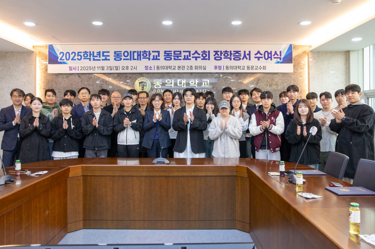 동문교수회 김찬용 회장님께서는 "교수이기 이전에 선배로서 후배들을 위한 장학금을 지원하게 되어 더욱 뜻깊다"며, "선배들의 내리사랑을 이어받아 항상 베푸는 동의인이 되기를 희망한다"고 전하셨습니다.